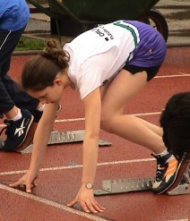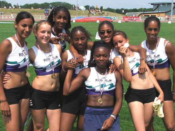 : 6 Sépabistes minimes (record) : 5 filles et 1 garçon - le pauvre ! -, avec le coach : - Baptiste BOURILLON : 2° de la finale B du 100m haies avec 15,12s (v : -1,5) ; 15,56s en série ; Poids : 12° avec 11,28m et longueur : 20° avec 4,67m - Lucie ARCHENAULT : 5° du disque avec 27,43m ; 17° au triple saut avec 9,30m et 7,79s au 50m (v : -0,1) - Hélène ROILLE : 80m haies : 14,02s en série et 13,75s en finale B, 6° (v : +0,8) ; 27° au triple saut 8,85m ; 14° au poids 8,90m - Auriane BOURREAU : hauteur : 0 ; disque : 13° avec 21,43m - Noémie HARRY : hauteur : 0 ; 80m haies : 3° en finale B avec 13,36s (v : +0,8), 13,62s en série. - Madeline CHARBUIS : 7,32s en série du 50m plat (v : -1,3) et 2° avec le relais de l'ECO-CJF. (ci-dessous) |