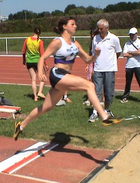 en longueur, 18,23m au disque) - BOUJU Lucie, BEF, 13ème départementale avec 49pts (8,2s au 50m, 14,71m au disque, et 3,71m en longueur) derrière Justine HABERT 12ème avec 50pts et récompensée aujourd'hui. - SEVIN Céline, BEF, 18è de la journée avec 37 pts (8,2s au 50m, 3,22m en longueur, 4,84m au poids) - HABERT Mathieu, (JUM) 12,1s au 100m et 6,05m en longueur. - HABERT Nicolas, (CAM), 40,1s au 300m(3è) - EL BAKRI Carole, (SEM) 72,5s au 400m et 27,60m au javelot - HABERT Francine, (VEF) 19,8s au 100mH, 13,60m au javelot, et 3,78m en longueur - COFFINEAU Etienne, (SEM) 16,1s au 11OmH ( 3è), et 6,13m en long (2è) - PETIT Benjamin, (ESM) 5,85m en longueur et 17,4s au 110mH - GERVAIS Angélique, (SEF) 71,0s au 400m et 5,07m en longueur, première ! - DESNOUES Angélique, (ESF) 72,5s au 400m - ASSELIN Marine, (CAF) 16,5s au 100mH (2è), 4,60m en longueur (4è), et 18,86m au javelot. |